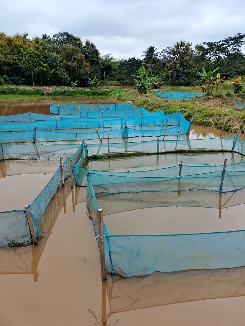 La deuxième escale s’est faite à la ferme DIAKITE et FILS situé dans le village de Dramanekro. Ce village est à 15 km d’Abengourou. La superficie en eau de ladite ferme est d’environ 1,60 hectare.