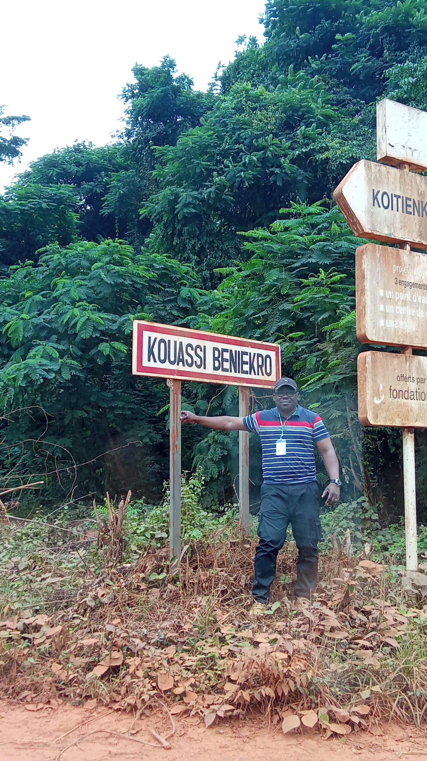La première escale s’est déroulée à la ferme EPONON qui se trouve à la sortie nord du village de Kouassi Beniékro, village situé à 7 km d’Abengourou sur la route menant à Agnibilekro. Crée en 1997 la ferme s’étend sur une superficie de 3 hectares. Elle est alimentée en eau par la rivière Sranblé Assié et dispose également d’un forage.