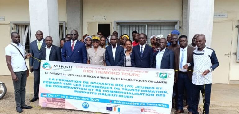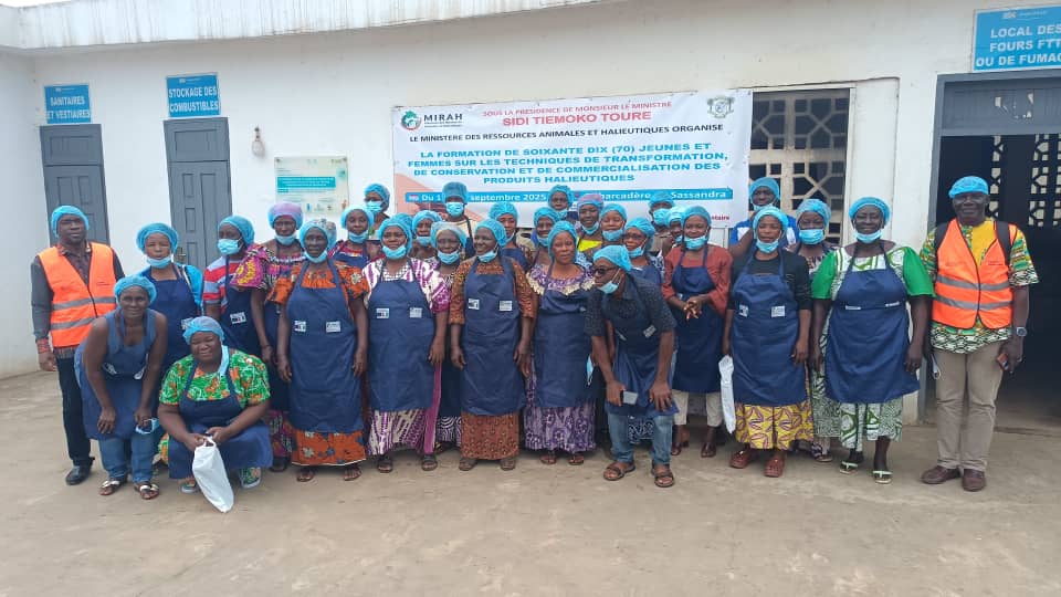 La ville de Sassandra, chef-lieu de la région du Gboklé a abrité du 1er au 06 septembre 2025, la formation de soixante-dix (70) jeunes et femmes sur les techniques de transformation, de conservation et de commercialisation des produits halieutiques.