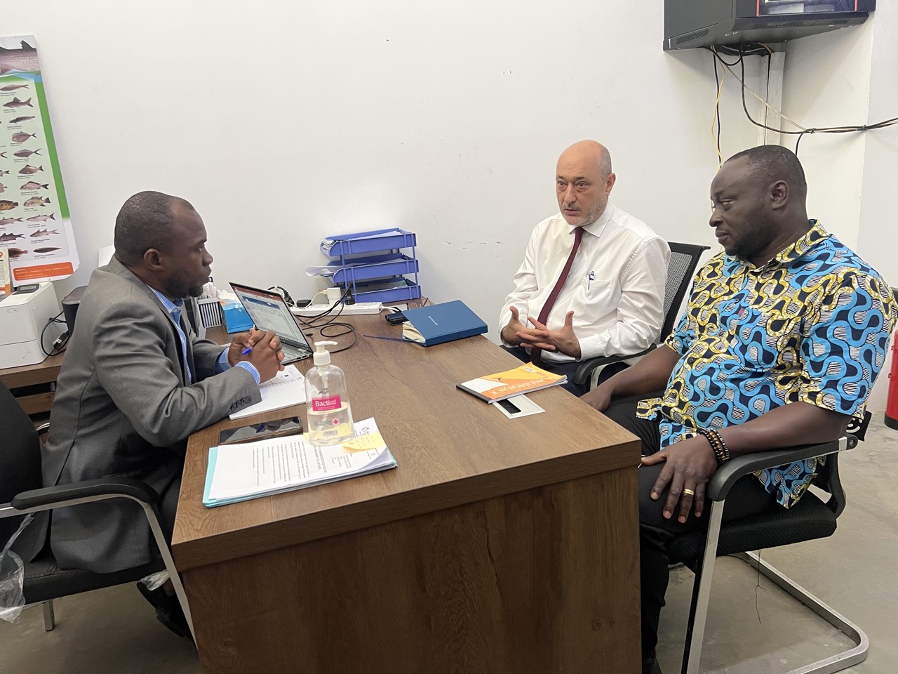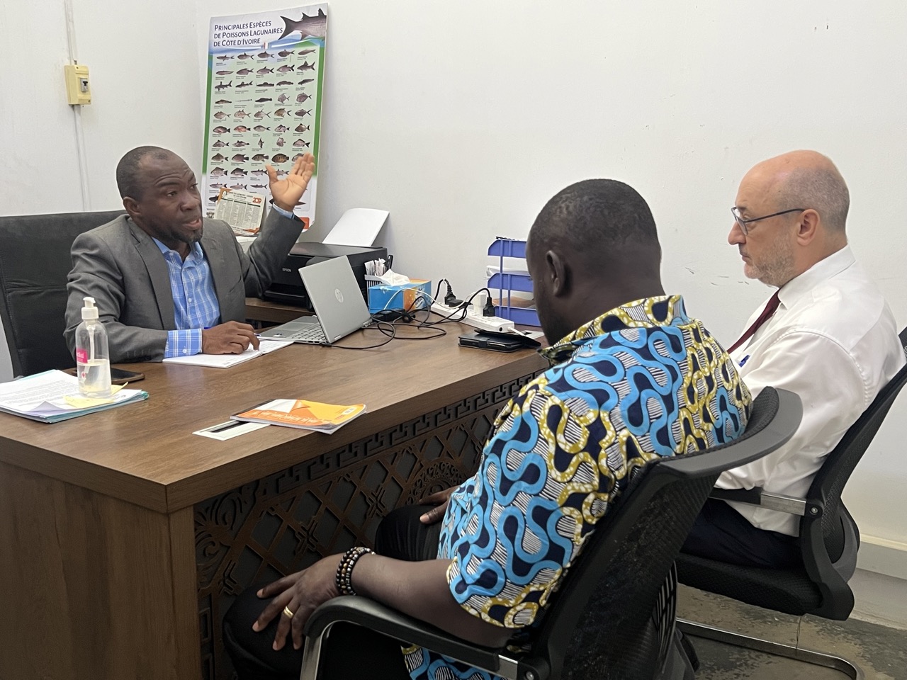 Conformément à son calendrier, il a rendu une visite protocolaire au Directeur de cabinet du Ministère des Ressources Animales et Halieutiques (MIRAH), Monsieur Assoumany GOUROMENAN. Il était accompagné du Conseiller Techniques pêche Colonel KODJO Alain et du Coordonnateur du Programme d’Appui à la Gestion Durable des Ressources Halieutiques (PAGDRH), Monsieur TOURE Adama.