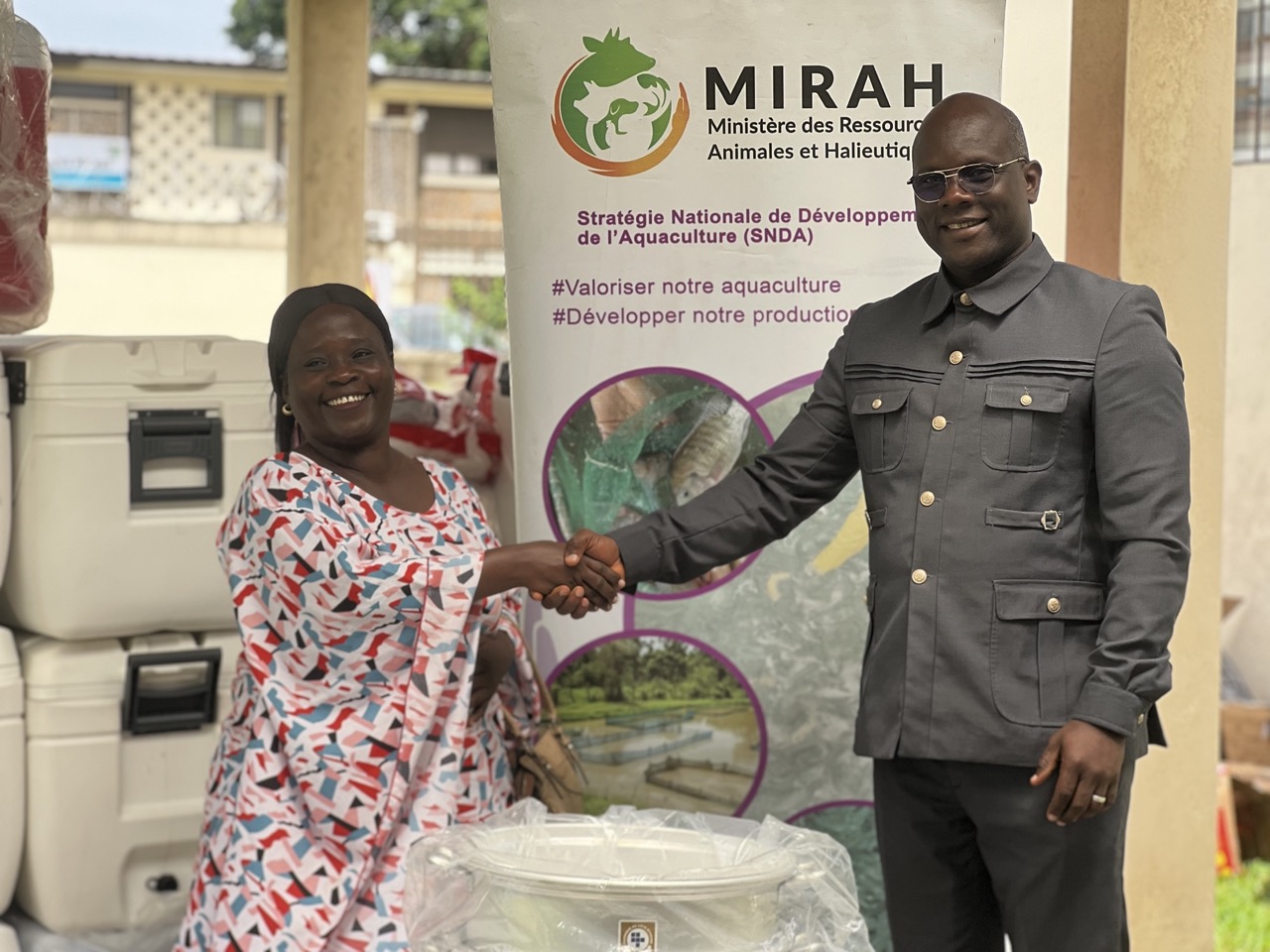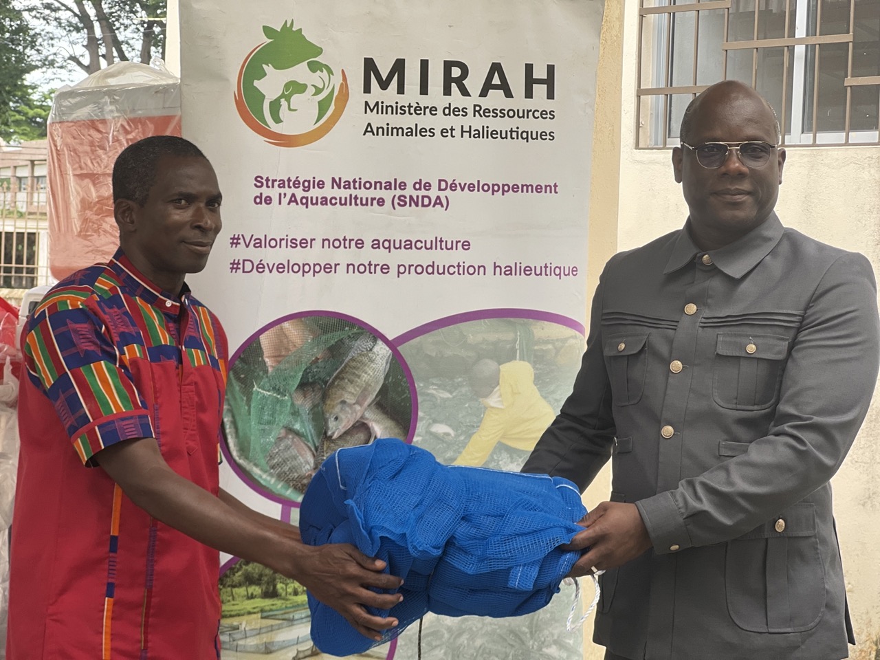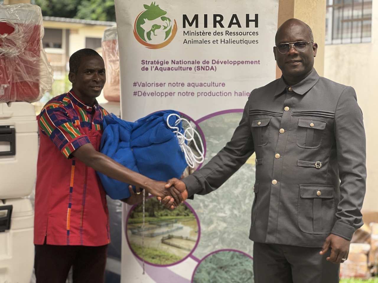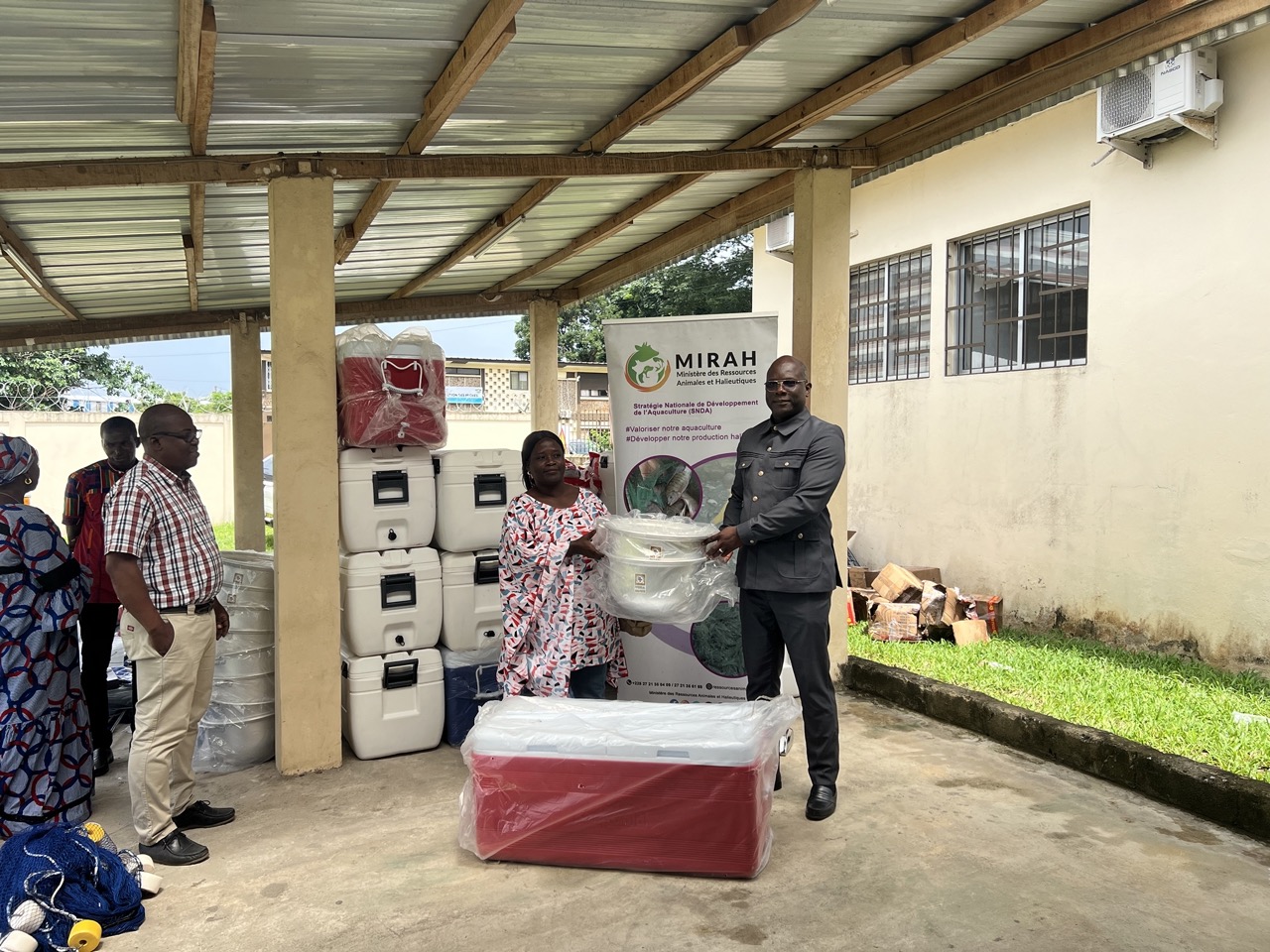 Placée sous l’autorité de la Direction de l’Aquaculture, représenté par le Dr ALLOU Régina et conduite par le Coordonnateur du PAGDRH, Monsieur TOURE Adama, assisté pour la circonstance de Monsieur KOUAKOU Simon Pierre, Chef du département aquaculture du PAGDRH, s’est déroulée la seconde et dernière étape de la remise des équipements à l’Interprofession Aquacole.