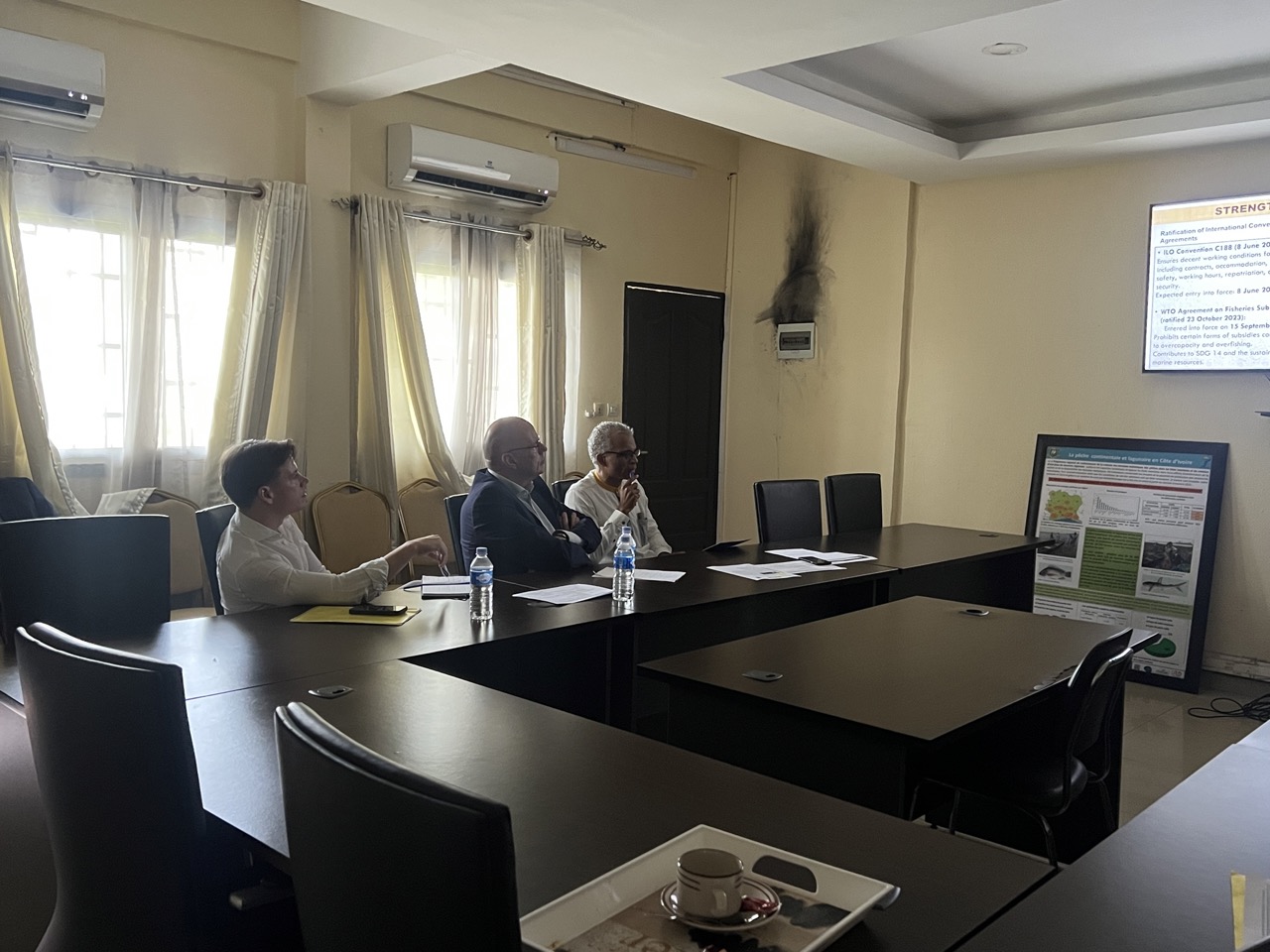 Intervenant à la suite du Conseiller Technique pêche, le député TON Diepeveen et son collaborateur M. Amaury Verhaeghe, Conseiller politique au Parlement européen, ont remercié la partie ivoirienne pour la qualité de l’accueil, il s’est dit satisfait du travail abattu.