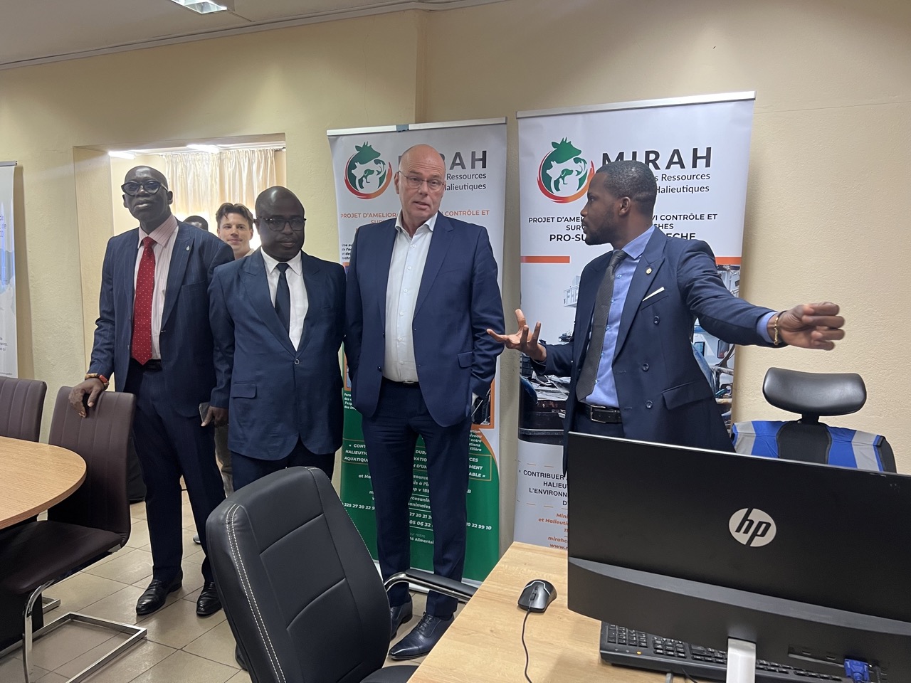 La mission de travail du député au parlement Européen Monsieur TON Diepeveen a débuté le 17 février 2026 à la Direction des pêches, où il a été accueilli à 8h30 par le Conseiller Technique pêche, Colonel KODJO Alain et le Directeur des pêches, Colonel FOFANA Bina entouré de ses sous-directeurs.