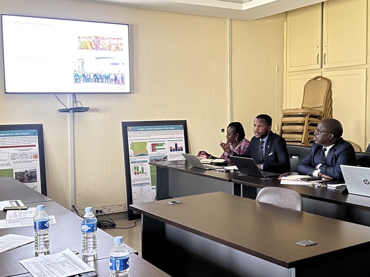 A sa suite, M. DIOMANDE Maxime Coordonnateur du Projet Pro-Surveillance a fait un exposé linéaire sur le fonctionnement du Centre de Surveillance des pêches (CSP) et le bilan des acquis. Il s’en est suivi une séance de questions-réponses entre la partie Européenne et Ivoirienne. La séance de travail s’est achevée avec la visite guidée du Centre de surveillance des pêches.